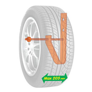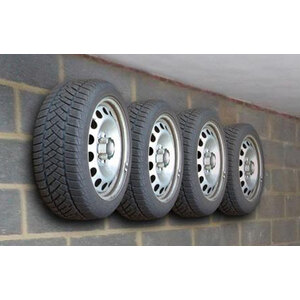 Set 4 staffe porta-ruote. Per installazione a parete, tasselli di fissaggio in dotazione. Soluzione salvaspazio per lo stoccaggio di 4 ruote complete con larghezza max 205 mm. Contenuto del set: 4 staffe, 8 tasselli di fissaggio. Foro nel muro Ø 9 mm