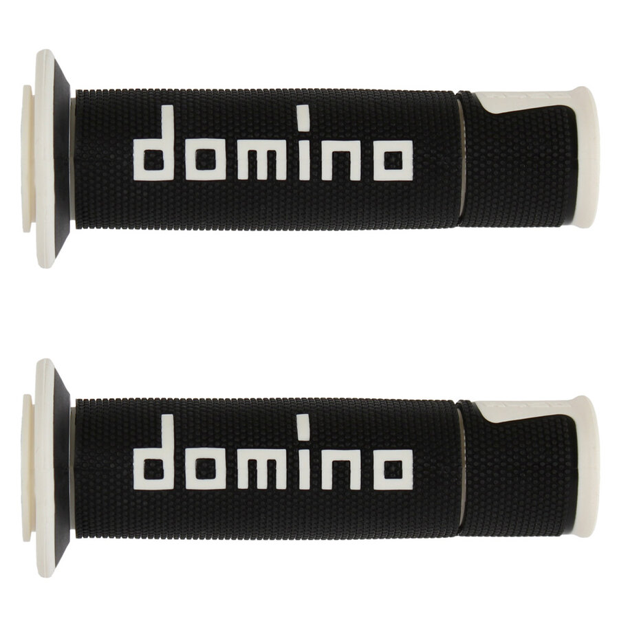 Coppia manopole in gomma termoplastica bicomponente con finitura multiconica. Lunghezza: 120mm/125mm. Estremità: aperta. Diametro Manubrio/Tubo gas: 22/26mm. Scanalature per filo di ferro: 2-3 cave. Diametro flangia : 47mm. Diametro impugnatura Manopola montata: 31,5mm. Impiego: on-road