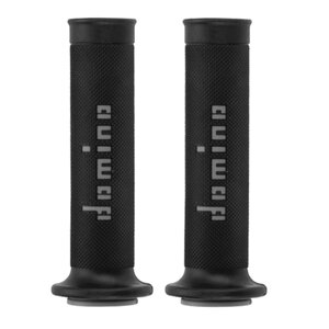Coppia manopole in gomma termplastica bicomponente con finitura multi-piramidale. Lunghezza: 120mm/125mm. Estremità: aperta. Diametro manubrio/tubo gas: 22/26mm. Scanalature per filo di ferro : 2-3 cave. Diametro flangia : 46mm. Diametro impugnatura manopola montata: 30mm. Impiego: On-road