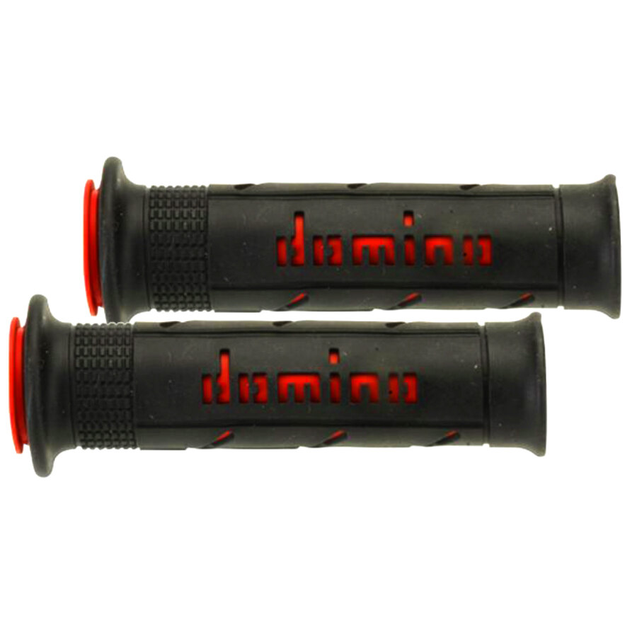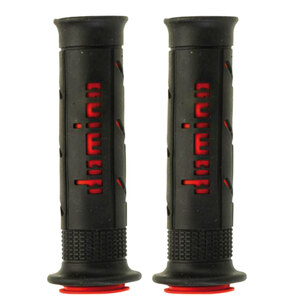 Coppia manopole in gomma termoplastica bicomponente con finitura liscia Soft. Lunghezza: 120mm/125mm. Estremità: aperta. Diametro Manubrio/Tubo gas: 22/26mm. Scanalature per filo di ferro : 2 cave. Diametro flangia : 43mm. Diametro impugnatura manopola montata: 31mm Impiego: On-road, scooter