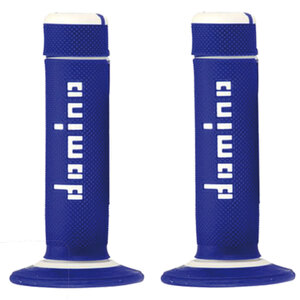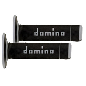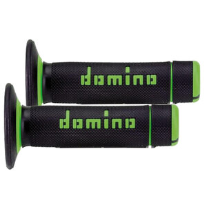 Coppia manopole in gomma termoplastica bicomponente. Finitura speciale con zona in rilievo nella parte posteriore. Scanalature per fil di ferro. Lunghezza: dx 120mm/sx 123mm. Estremità: chiusa. Diametro Manubrio/Tubo gas: 22/26mm. Scanalature per filo di ferro : 2-3 cave. Diametro flangia : 60mm. Diametro impugnatura manopola montata: 30/32mm Impiego: Off-Road, scooter