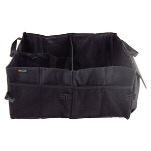 Organizer multifunzionale da bagagliaio. Mantiene il bagagliaio organizzato e in ordine. Tasche supplementari a rete per ulteriore spazio di conservazione. La maniglia per il trasporto lo rende facile da spostare. Il design con fibbia permette di piegarlo piatto quando non in uso. Il velcro nella parte inferiore permette di fissarlo nella posizione desiderata