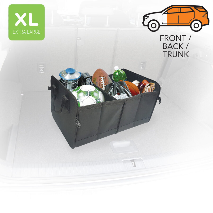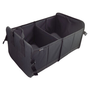 Organizer ripiegabile in due parti da bagagliaio, in materiale resistente. Mantiene il bagagliaio organizzato e in ordine. Enorme spazio di archiviazione. Parete rigida e supporto robusto. La maniglia per il trasporto la rende facile da caricare/scaricare dall'auto. Cartoncino rigido alla base per un supporto extra. Il velcro nella parte inferiore permette di fissarlo nella posizione desiderata