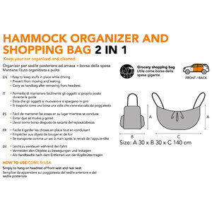 Organizer per sedile posteriore ad amaca + borsa della spesa. Mantiene l'auto organizzata e pulita. Permette di mantenere facilmente gli oggetti al proprio posto durante la guida. Si trasporta come una borsa una volta che viene staccato dal poggiatesta. Semplice da appendere sul poggiatesta del sedile anteriore e del sedile posteriore