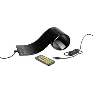 Tabella Led programmabile. Nessun limite alla tua fantasia. Infinite possibilità di utilizzo, con scritte e simboli preimpostati e ulteriori scelte personalizzabili tramite app per smartphone. Alimentazione con cavo USB da 4,5m e interruttore on/off. Ultra flessibile per un'installazione universale. Fornita con telecomando e nastro biadesivo trasparente.