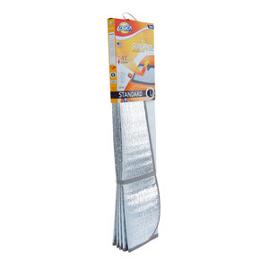 Mantiene l'interno dell'auto fresco e protetto. Riflette oltre il 95% dei raggi UV dannosi. Doppio isolamento e maggior rigidità rispetto al parasole classico. Questo parasole a 2 strati di isolante offre una rigidità 10 volte superiore rispetto ad un parasole tradizionale. Designed in USA. Utilizzando questo parasole, la temperatura dell'abitacolo risulterà inferiore e più fresca di 5° rispetto alla temperatura avvertita con altri parasoli. Attenzione: prodotto disponibile in varie misure, per individuare il codice corretto consigliamo di misurare con il metro le dimensioni del parabrezza