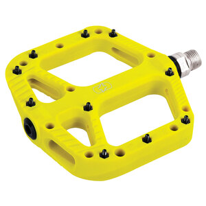 Pedali piatti progettati con un'ampia superficie e un profilo stretto per la massima aderenza e colpi di pedale ridotti. I 20 perni rimovibili possono essere regolati per ottimizzare il livello di aderenza preferito, offrendo controllo indipendentemente dalle condizioni del percorso o dall'ambiente in cui si guida. Corpo in nylon ad alto impatto. Asse cromato da 9/16". Cuscinetti sigillati. 20 perni sostituibili per pedale. 412g al paio. Dimensioni della piattaforma: 114x110mm