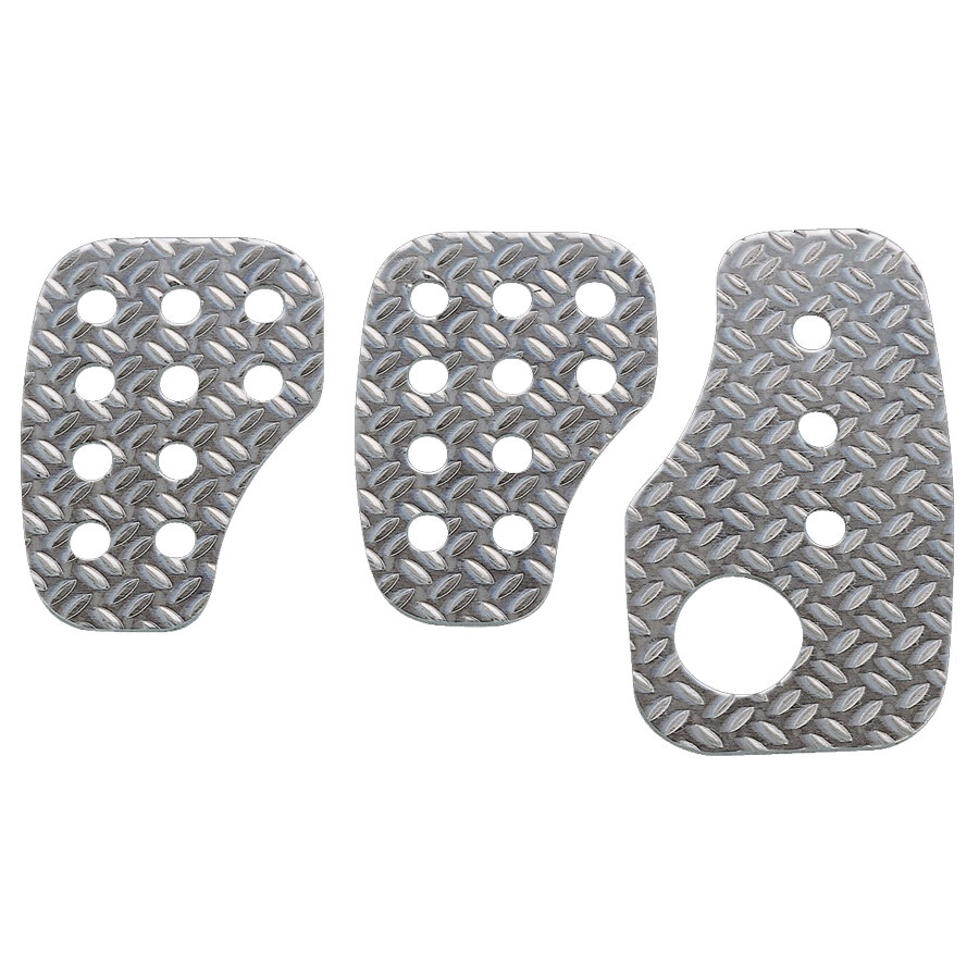 Serie completa di pedaliere in lastra di alluminio mandorlato, si possono sagomare a vostro piacimento adattandole alla forma dei pedali della vostra vettura