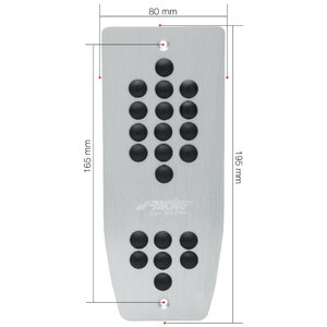 Pedana poggiapiedie in alluminio satinato. Con gommini antiscivolo. Dim.: 80x195mm Interasse fori: 165mm