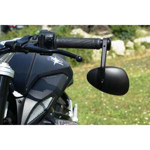 Specchio retrovisore da terminale manubrio. Omologato. Speciale Cafè Racer. Attacco regolabile da diam.13 a 22mm Lunghezza 120mm Altezza 165mm. Confezione 1 pezzo