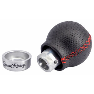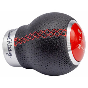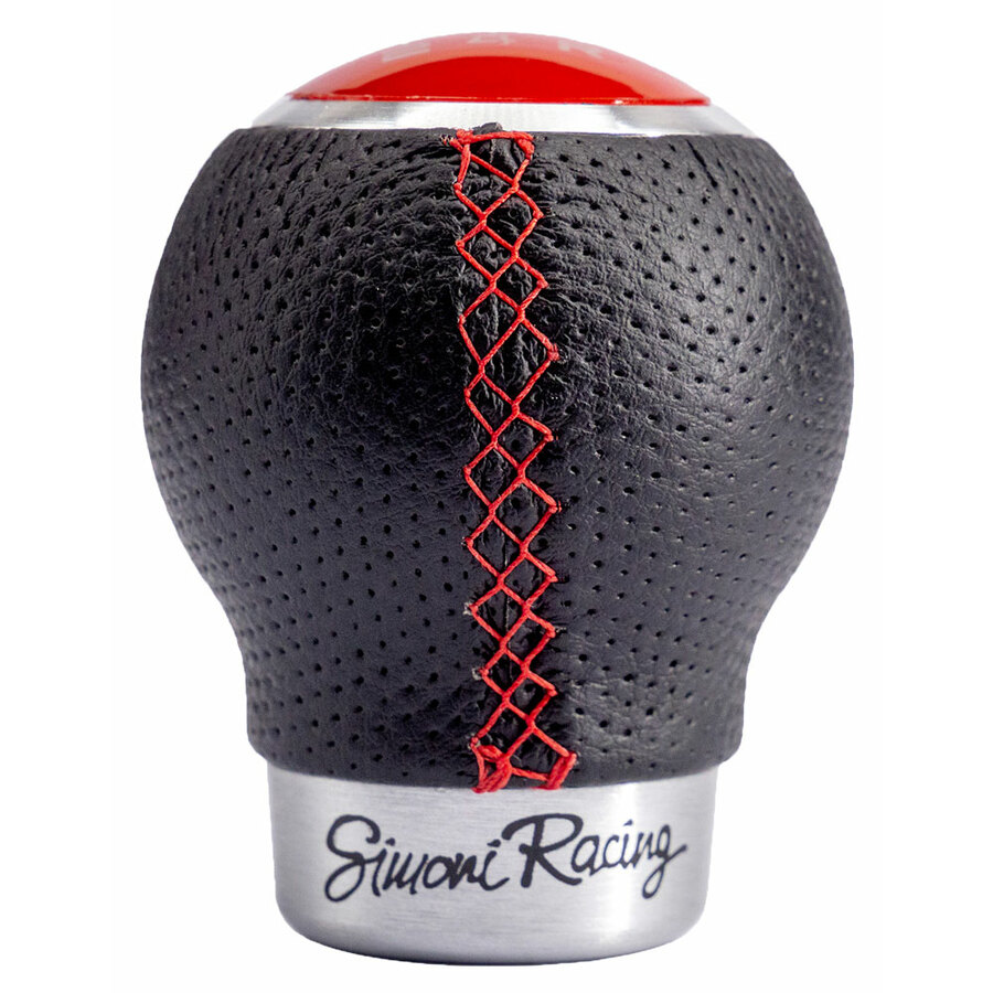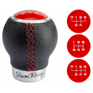 Pomello cambio universale. Pomello in ecopelle forata. Cucitura rossa. 3 schemi