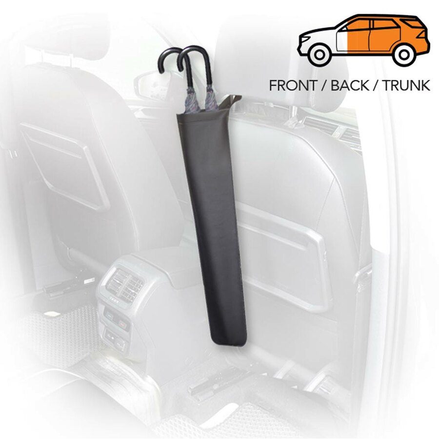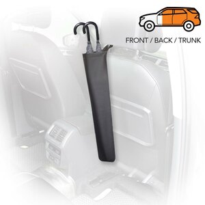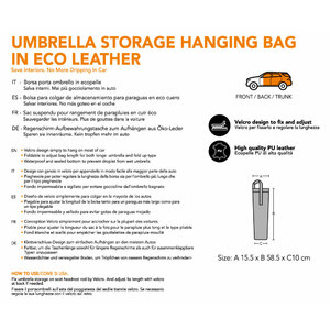 Borsa portaombrello in ecopelle. Salva interni. Mai più gocciolamento in auto. Pieghevole per poter regolare la lunghezza della borsa sia per l'ombrello più lungo che per il tipo pieghevole. Fondo impermeabile e sigillato per evitare goccioline dall'ombrello bagnato. Gancio in velcro per appenderlo in modo facile alla maggior parte delle auto. Ecopelle PU di alta qualità