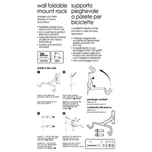 Supporto pieghevole a parete per biciclette. Ideale anche per piccole riparazioni. Il design pieghevole consente di risparmiare spazio quando non è in uso. Il rivestimento in pvc protegge la bici dai graffi. Fissaggio a telaio. Max load: 20 kg