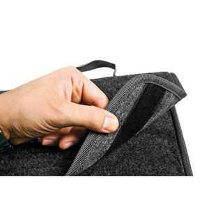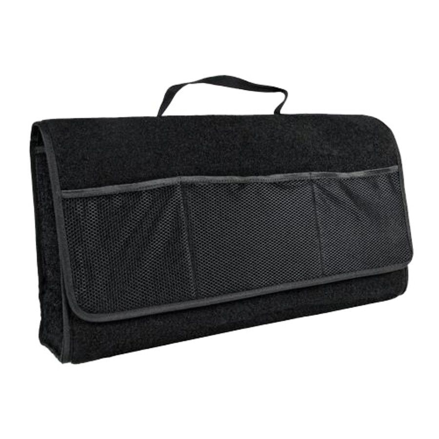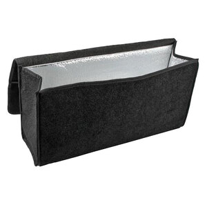 Borsa organizer per baule con rivestimento interno. Prodotta in moquette resistente e lavabile. Rivestita internamente in materiale impermeabile. Non assorbe liquidi, parzialmente impermeabili per contenere oggetti umidi o bagnati e trattenere piccole perdite di liquido (olio, antigelo, shampoo, cera...). Utile anche per contenere tutti gli oggetti comunemente sparsi nel baule (cavi traino, triangolo, ecc...). Facilmente lavabile, piegata occupa poco spazio. Con maniglia e chiusura a strappo, fissaggio rapido tramite velcro