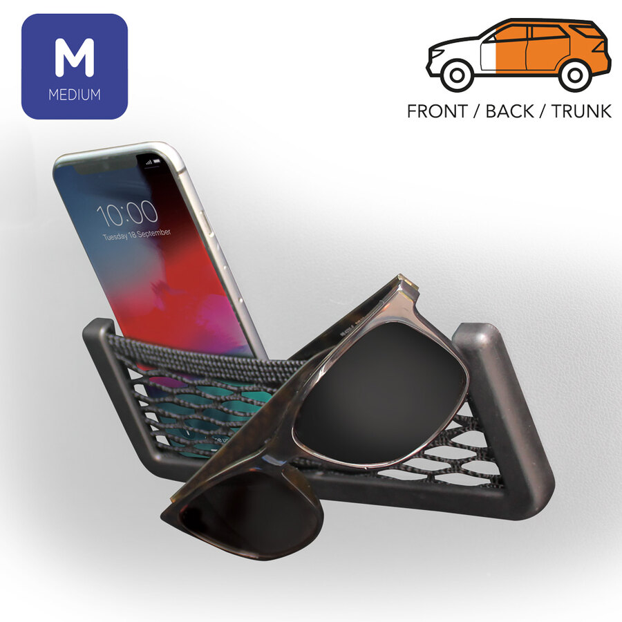 Organizer a rete con tasca. P erfetto per conservare oggetti di piccole e medie dimensioni. Adesivo 3M. Struttura semplice e facile da utilizzare. Ideale per conservare piccoli oggetti come telefoni, sigarette, biglietti... Installazione rapida