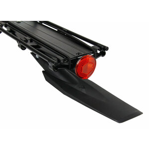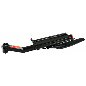 Portapacchi in alluminio con attacco al reggisella. Parafango integrato. Adatto a reggisella con diam. da 25.0 a 31.8mm. Portata massima 9 kg