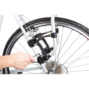 Sistema brevettato di fissaggio alla parte anteriore (carico max 10kg) o posteriore (carico massimo 11,3kg) della maggior parte delle bici, dalle mountain bike biammortizzate alle biciclette per uso quotidiano e da corsa. Il portapacchi resta fermo anche con carichi pesanti grazie ai terminali rivestiti in gomma che ne impediscono lo spostamento proteggendo il telaio della bici. L'installazione e la rimozione sono semplici e veloci grazie al pratico accesso al sistema di montaggio Ingombro ruota fino a 29" x 2,5". Possibilitá di montare una luce posteriore per la massima visibilitá. Pedala comodamente grazie al pianale e ai binari regolabili che offrono il massimo spazio per il tallone