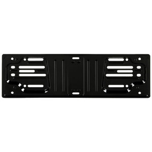 Porta targa anteriore in acciaio. Fissaggio rapido. Universale. Verniciatura con polvere epossidica. Kit completo composto da: Portatarga, 4 rondelle in metallo, 4 distanziali in plastica, 4 viti autofilettanti, 2 clips centrali in plastica, 4 bottoni di fissaggio azzurri. Dimensione: 375x125 mm