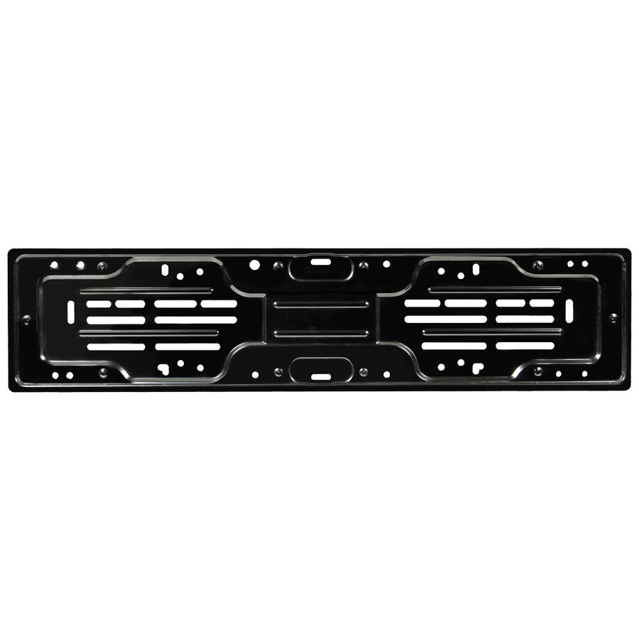 Portatarga posteriore. Fissaggio rapido. Universale. Verniciatura con polvere epossidica. Contenuto: portatarga, 4 rondelle in metallo, 4 distanziali in plastica, 4 viti autofilettanti, 2 clips centrali in plastica, 3 bottoni di fissaggio azzurri, 1 bottone di fissaggio bianco. Per targhe mod. 1999>