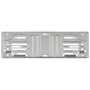 Leggero, flessibile e resistente. Fissaggio rapido. Universale. Kit completo composto da: Portatarga, 4 rondelle in metallo, 4 distanziali in plastica, 4 viti autofilettanti, 2 clips centrali in plastica, 4 bottoni di fissaggio azzurri