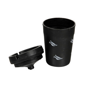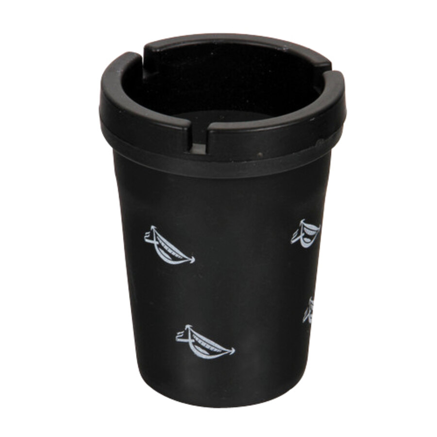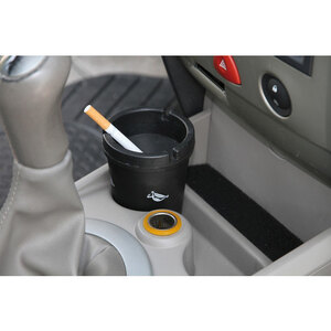 Posacenere auto-estinguente a barattolo. Si inserisce nelle predisposizioni porta-bevande dei cruscotti auto, camion, camper. È sufficiente inserire la sigaretta nel foro centrale per spegnarla in pochi secondi. Può contenere fino a 40 mozziconi di sigarette
