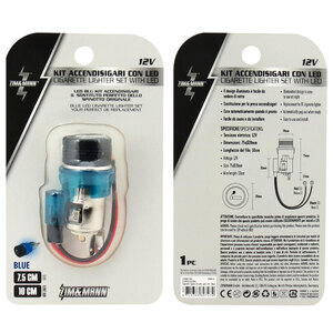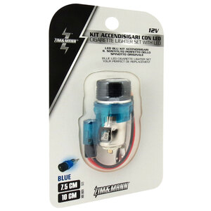 Accendisigari con LED blu. Il sostituto perfetto dello spinotto originale. Grazie al LED è più visibile di notte. Esce automaticamente quando è pronto. Semplice da usare ed installare. Tensione elettrica: 12V Dimensioni: 75xd28mm Lunghezza del filo: 10cm