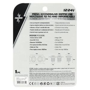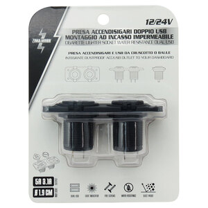 Presa doppia: accendisigari e USB Montaggio ad incasso. Impermeabile. Carica più dispositivi contemporaneamente. Copertura antipolvere. Indicatore a LED. Pannello rimovibile. Semplice da installare. Tensione elettrica: 12/24V Uscita USB: 5V 3,1A Dimensioni 41x104x50mm