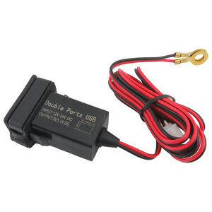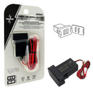 Presa USB doppia. Presa USB antipolvere. Facilmente integrabile nel cruscotto o baule. Uscita 5V 3.1A. Doppia porta USB per caricare due dispositivi simultaneamente. Copertura antipolvere ideale per uso interno ed esterno. Compatibile con la maggior parte dei dispositivi USB. Tensione elettrica: 12/24V. Dimensioni: 35x48x18mm. Lunghezza del cavo: 135cm
