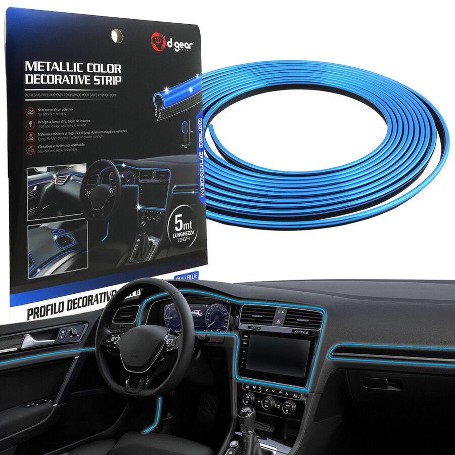 Profilo decorativo per interni auto: effetto metallico. Dona un tocco moderno e distintivo agli interni della tua auto con questo profilo decorativo universale dal design a V. Realizzato in materiale flessibile, resistente ai raggi UV e durevole nel tempo, è ideale per valorizzare i contorni di cruscotti, pannelli e altri elementi interni. Non richiede adesivi: si inserisce facilmente con una semplice pressione, garantendo un'installazione rapida e fai-da-te. La striscia è rimovibile, riutilizzabile e può essere tagliata su misura per adattarsi perfettamente al tuo veicolo. Oltre all'estetica, aiuta a prevenire l'accumulo di polvere negli interstizi. Compatibile con la maggior parte dei modelli di auto