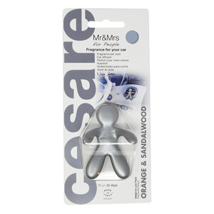 Cesare è un profumatore adattabile a tutti i tipi di auto. Realizzato in Eva, un particolare polimero termoplastico atossico. Esso contiene olii essenziali ed una molecola aggressiva a lunga durata contro i cattivi odori. Made in Italy. Fragranza: arancio e sandalo