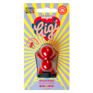 Gigi, col suo sederino all'insù, è un cucciolo tenero e coccoloso. Portatelo a passeggio in auto con voi, camminerà su quattro gambe come un neonato sulle vostre bocchette dell'aria e profumerà teneramente ogni istante del vostro viaggio. Fragranza : Muscat Grape