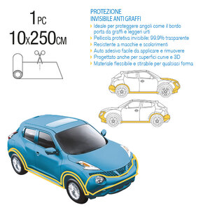 La migliore assicurazione per il tuo veicolo. Protezione invisibile Ideale per paraurti, fascia laterale, battitacco, ecc. Pellicola protettiva invisibile: 99.9% trasparente. Resistente a macchie e scolorimenti. Auto adesivo facile da applicare e rimuovere. Progettato anche per superfici curve e 3D. Materiale flessibile e adattabile per qualsiasi forma. Protegge la tua auto & suv dai graffi, dai danni provocati dai sassi, dalle macchie di catrame, da pietrisco, piccoli urti, dalle radiazioni dei raggi UV. Aiuta a mantenere integra la vernice della tua auto.