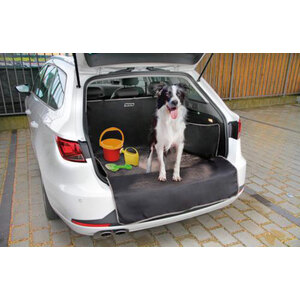 Protezione universale per baule e paraurti. La soluzione ottimale per trasportare animali e oggetti senza rovinare il baule. Copre e protegge il piano, le pareti del baule e durante il carico e lo scarico, anche il paraurti. Fissaggio rapido tramite nastro a strappo. Lavabile, 190x100 cm, in robusto poliestere impermeabilizzato con uno strato di PU