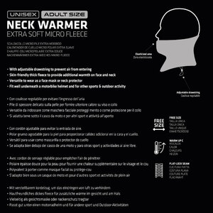 Scaldacollo in micro pile extra morbido. Con coulisse regolabile per evitare l'ingresso dell'aria. Pile di spessore, delicato sulla pelle, fornisce ulteriore calore su viso e collo. Si adatta bene sotto il casco da moto e per altri sport e attività all'aperto. Con coulisse regolabile. Cucitura piatta