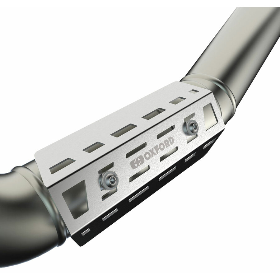 Protezione scarico. Offre protezione termica deviando il calore di scarico irradiato e protegge te, i tuoi vestiti o i tuoi accessori dal contatto accidentale con un sistema di scarico caldo. E' fornito con morsetti regolabili in modo che possa essere montato su una varietà di diametri di tubi di scarico di diverse dimensioni. Costruzione in acciaio inossidabile. Resistente alla corrosione. Include: protezione dello scarico, 2 fascette da 45 - 60mm, fissaggi: 2 rondelle antivibranti, viti M6, rondelle piatte