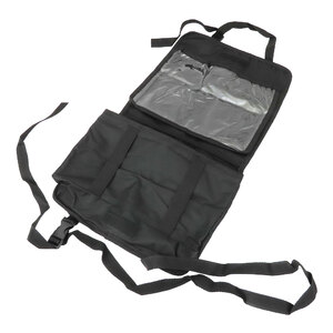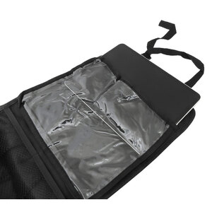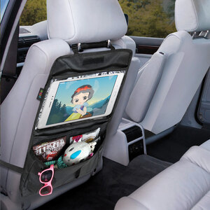 Proetggi sedile con tasca per tablet (max 12") e finestra di visualizzazione trasparente touchscreen. Multi spazio, tasca profonda per snack, giocattoli, bottiglie, articoli di cancelleria. Semplice da installare grazie alla fibbia in plastica superiore e inferiore. Misura universale, compatibile con la maggior parte dei veicoli. Mantiene la vostra auto pulita ed in ordine. Realizzata in poliestere 600D, resistente e durevole