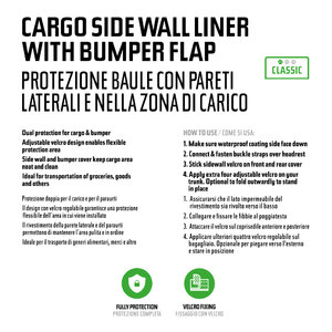 Protezione baule con pareti laterali e nella zona di carico. Waterproof. Protezione completa. Fissaggio con velcro. Protezione doppia per il carico e per il paraurti. Il design con velcro regolabile garantisce una protezione flessibile dell'area in cui viene installato. Il rivestimento della parete laterale e del paraurti permettono di mantenere l'area pulita e in ordine. Ideale per il trasporto di generi alimentari, merci e altro