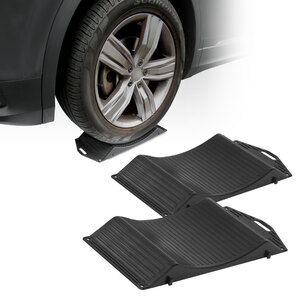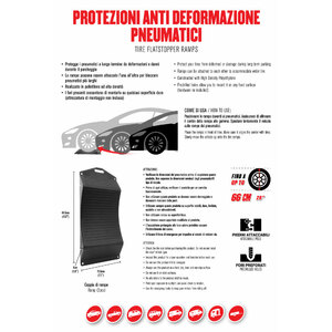 Protezioni anti deformazione pneumatici. Per pneumatici fino a 66cm. Impediscono la deformazione degli pneumatici e ne prolungano la durata. Sono ideali per il parcheggio a lungo termine di auto, roulotte, camper, caravan, autocarri, rimorchi o auto d'epoca. Ideale per lo svernamento o per lunghi viaggi in campeggio. Utilizzabile anche come dispositivo di arresto durante il parcheggio. Le 2 rampe possono essere attaccate l'una all'altra per bloccare pneumatici più larghi. Prodotto realizzato in polietilene ad alta densità. I fori presenti consentono di montarlo su qualsiasi superficie dura (viti di fissaggio non incluse). Veificare sempre le dimensioni del pneumatico prima di procedere all'acquisto del prodotto
