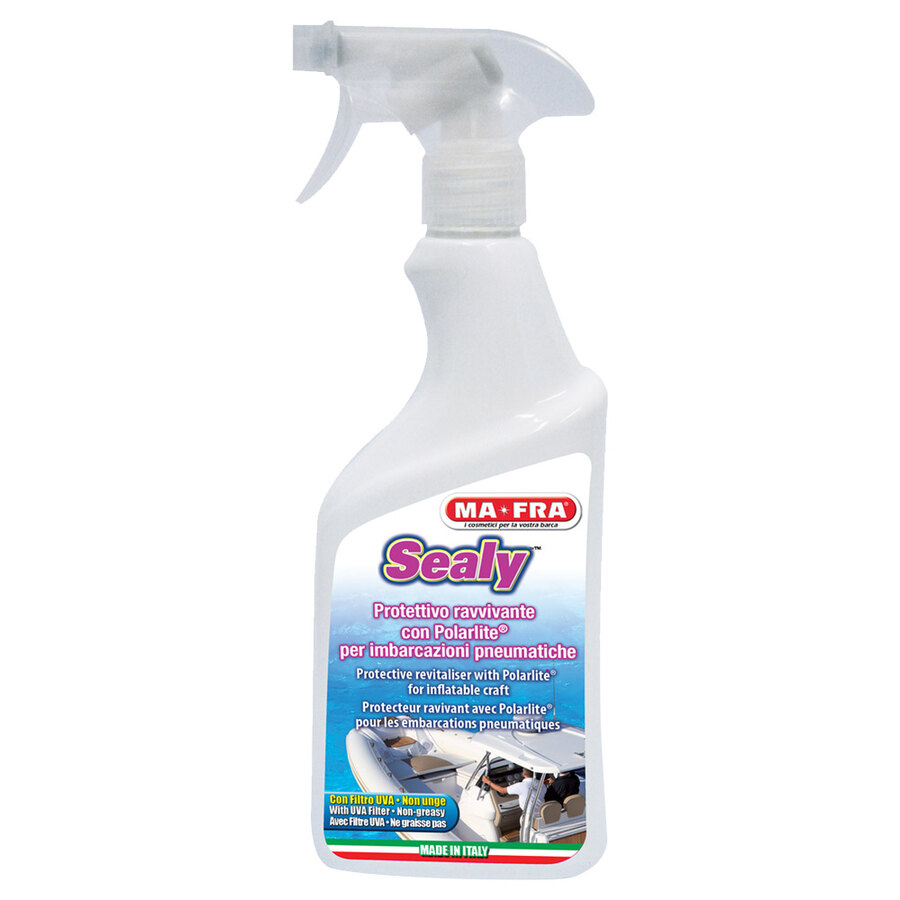 Protettivo ravvivante per imbarcazioni pneumatiche. Formula con Polarlite®. Protegge il tessuto gommato. Previene l'invecchiamento e l'ingiallimento. Prodotto professionale e concentrato, che lucida e protegge il vostro gommone in un'unica operazione. La rivoluzionaria formula con Polarlite®, il principio attivo polifunzionale di protezione studiato direttamente nei laboratori Ma-Fra, permette di ravvivare, lucidare e proteggere, con un'unica operazione, la superficie del gommone. L'effetto idrorepellente fa scivolare lo sporco e non lo fa aderire al tessuto, facilitando le operazioni di lavaggio e rimessaggio. La sua azione idratante e lucidante mantiene, inoltre, morbido ed elastico il tessuto restituendo al gommone l'aspetto che aveva da nuovo