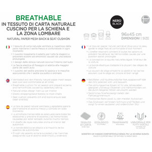 Cuscino per schiena e zona lombare in tessuto di carta naturale. Materiale naturale e innovativo: realizzato in tessuto di carta naturale, offre un supporto delicato e traspirante per il massimo comfort. Supporto ergonomico: progettato per sostenere la schiena e la zona lombare, alleviando la pressione e migliorando la postura. Fresco e confortevole: ideale per ogni stagione, mantiene la zona lombare ventilata e previene il surriscaldamento. Design universale: perfetto per l'uso in auto, a casa o in ufficio, garantendo una seduta piacevole e rilassante