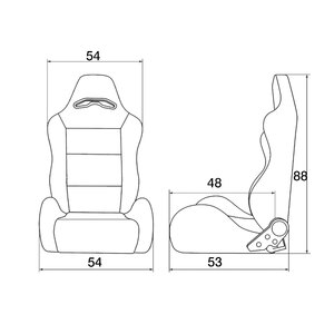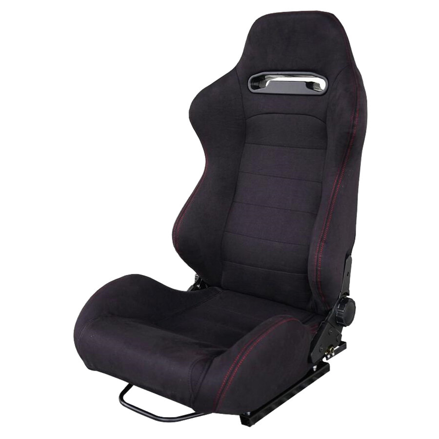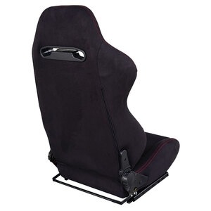 Sedile sportivo reclinabile rivestito in velluto nero. Completo di kit slitte universali. Velluto nero. Cuciture rosse. Doppia regolazione destra+sinistra. Controllare l'applicabilità sulla vettura prima di effettuare l'acquisto!