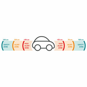 Sistema di assistenza al parcheggio posteriore o anteriore tramite pulsante (pulsante opzionale, non incluso, vedere nostro codice 1984793) con 4 sensori ad ultrasuoni e segnalazioni acustiche progressive che determinano la distanza tra il veicolo e l'ostacolo. Installazione a filo come in primo impianto anteriore o posteriore. Configurazione personalizzata dei parametri con il tool di programmazione. Tensione nominale di funzionamento 12VDC. Range tensione di funzionamento 8/16 VDC. Range temperature di funzionamento -40/+85°C. Consumo di corrente <35 (a 12 V DC). Dimensioni unità centrale 60x62x22mm. Dimensioni sensore: diam. foro paraurti 17mm, diametro massimo del sensore 17mm. ECE-R-10 equivalente alla direttiva EMC CE 2006/28. ISO 17386 seconda edizione 2010/03/15 (MALSO)
