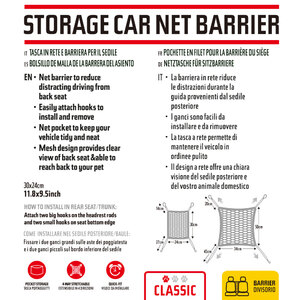 Rete portaoggetti divisoria. La barriera in rete riduce le distrazioni durante la guida provenienti dal sedile posteriore. Tasca portaoggetti. I ganci sono facili da fissare e da rimuovere. Estensibile in 4 direzioni
