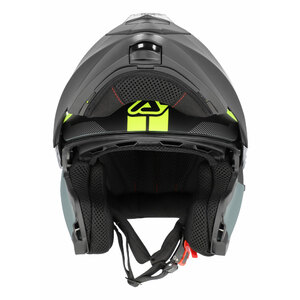 Casco modulare touring in materiale termoplastico. Visiera parasole integrata, azionabile tramite cursore. Chiusura Microregolabile a sgancio rapido. Predisposto per istallazione accessorio PINLOCK 70 (non incluso). Predisposto per alloggiamento auricolari interfono universali (max.diam 40mm/h6mm; interfono non incluso). Interni removibili, anallergici, traspiranti e lavabili. Paranaso amovibile. Sottomento removibile. Peso 1680g ± 50g in taglia M. Omologato ECE 22-06