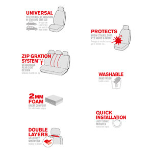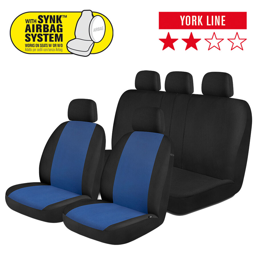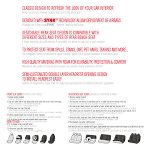 Coprisedili universali per auto/SUV con sedile anteriore di misura standard (con poggiatesta separato regolabile) e posteriore a panca. Design classico per rinnovare l'aspetto degli interni della vostra auto. Progettati con la tecnologia Synk: consente l'apertura degli airbag. Adatto per sedili con e senza airbag. Il particolare design dei coprisedili posteriori ne garantisce la compatibilità con diversi formati e modelli di sedili grazie allo schienale divisibile con zip. Utili per proteggere il sedile da macchie, sporco, peli di animali, lacerazioni e molto altro... Realizzati in materiali di alta qualità con speciale rivestimento interno in gomma piuma per garantire maggiore durata, protezione e comfort. Apertura del poggiatesta a doppio strato con design semi-personalizzato per installare facilmente il poggiatesta. Contenuto: 2 coprisedili anteriori schienale e seduta; 1 coprisedile a panca posteriore (copri poggiatesta inclusi per la parte anteriore/posteriore del sedile)