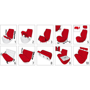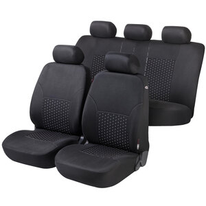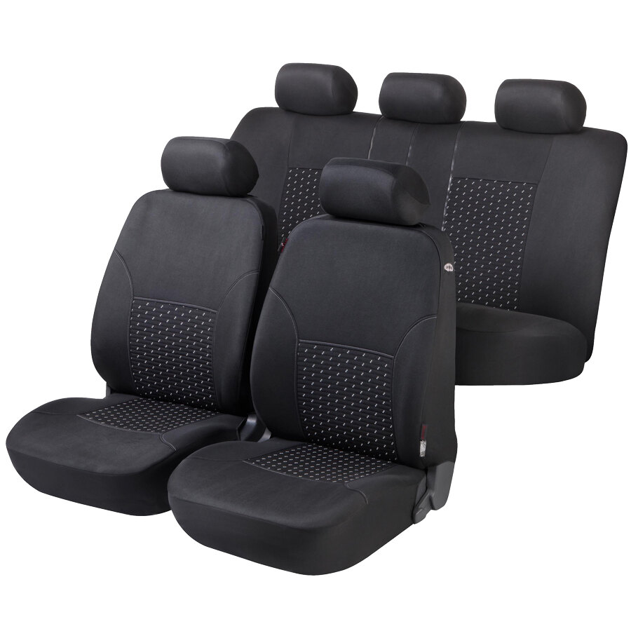 Coprisedili anteriori e posteriori, applicabili anche su sedili anteriori dotati di Air bag.. La foderina posteriore è dotata di chiusure lampo, per adattare il coprisedile al tipo di schienale della propria vettura. In dotazione vengono forniti 5 appoggiatesta(2 anteriori e 3 posteriori) Non istallabili su vetture dotate di sedili anteriori sportivi tipo Recaro