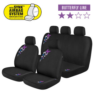Coprisedili universali per auto/SUV con sedile anteriore di misura standard (con poggiatesta separato regolabile) e posteriore a panca. Massima protezione ai vostri sedili rinnovando look e aspetto. Progettati con la tecnologia Synk, consentono l'apertura degli airbag. Schienale sedile posteriore divisibile con zip. Utile per proteggere il sedile da macchie, sporco, peli di animali e molto altro ancora... Materiale di alta qualità con speciale gomma piuma per garantire durata, protezione e comfort. Apertura del poggiatesta a doppio strato con design semi-personalizzato per una facile installazione. Lavabile a mano 30°. Installazione rapida