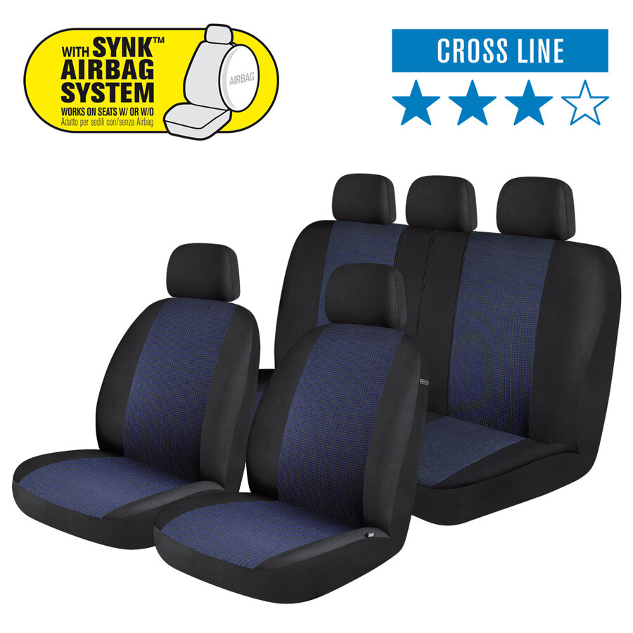 Coprisedili universali per auto/SUV con sedile anteriore di misura standard (con poggiatesta separato regolabile) e posteriore a panca. Luxury design per una protezione completa e un rinnovamento degli interni della vostra auto. Tessuto in maglia: maggiore comfort, stile e resistenza all'usura. Progettati con la tecnologia Synk, consente l'apertura degli airbag. Adatto per sedili con e senza airbag. Apertura superiore in Velcro per un'installazione semplice del poggiatesta. Il particolare design dei coprisedili posteriori ne garantisce la compatibilità con diversi formati e modelli di sedili grazie allo schienale divisibile con zip. Utili per proteggere il sedile da macchie, sporco, peli di animali, ecc. Realizzati in materiali di alta qualità con speciale gomma piuma alta dal grande comfort. Contenuto: 2 coprisedili anteriori schienale e seduta; 1 coprisedile a panca posteriore (copri poggiatesta inclusi per la parte anteriore/posteriore)