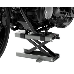 Solleva moto. Ponte sollevatore centrale a pantografo. Gamma di sollevamento: da 9 a 40,5cm in altezza. Carico massimo 500Kg La robusta struttura in acciaio garantisce affidabilità e sicurezza. Il design universale si adatta alla maggior parte delle moto. Le robuste ali laterali della base offrono maggior supporto e stabilità. Rivestito con una finitura durevole verniciata a polvere per la massima protezione contro la ruggine. Semplice da utilizzare. Presa inclusa