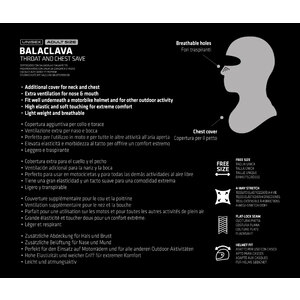 Sottocasco con salvagolae salvapetto. Copertura aggiuntiva per collo e torace. Ventilazione extra per naso e bocca. Perfetto per l'utilizzo in moto e per tutte le altre attività all'aria aperta. Elevata elasticità e morbidezza al tatto per offrire un comfort estremo. Leggero e traspirante. Tessuto elasticizzato a 4 vie